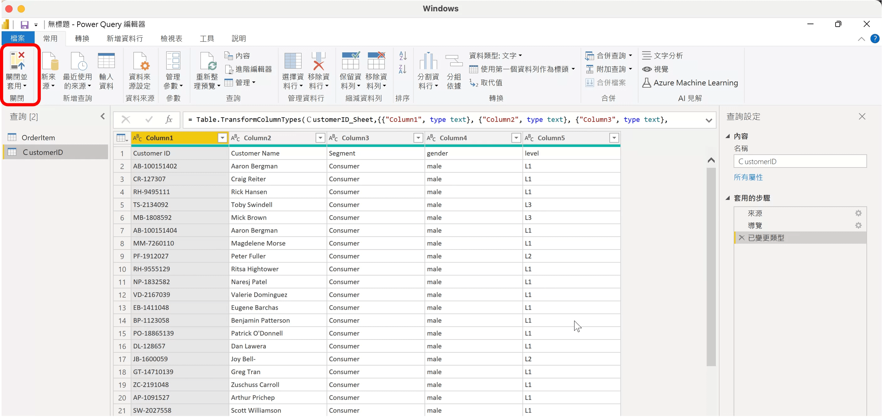 資料處理比較不是本篇文章的重點,這邊簡單說一下常見的資料處理類型,等下次有機會再來細細分享怎麼操作。除了在第三個步驟講到的缺漏值、格式、欄位名稱外,也會檢查數據量、確認有沒有需要新增或是刪減的欄位、進行長寬資料的轉換(取消樞紐),又或是統整同一個欄位的資料,像是統一大小寫、統一全形半形等。都沒有問題後就會按下左上角的「關閉並套用」。