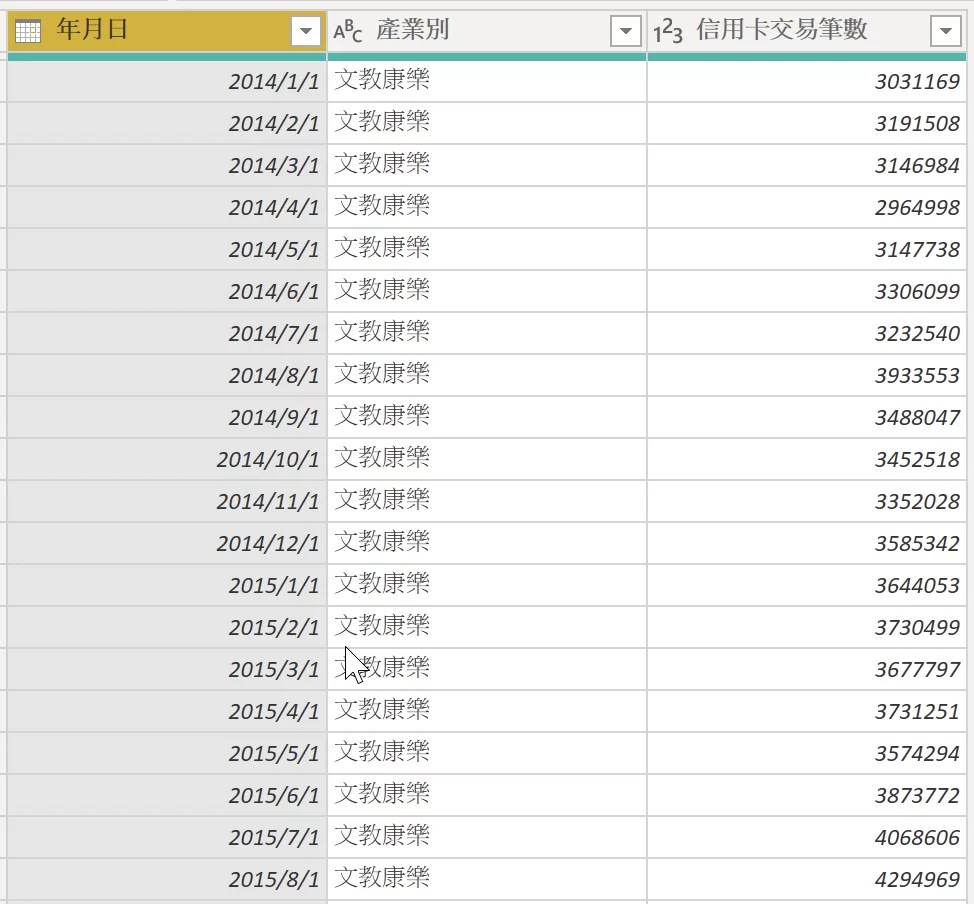 資料解樞紐之後,會發現年月的那一欄是日期格式,但是直接轉換成日期格式又會出現錯誤,原因是因為我們直接看可以判斷這個欄位的資料是想表達年份+月份,但是對於系統來說卻沒辦法,對於系統來說只是一個6位數的數字,沒有符合系統預設的日期表達方式,所以沒辦法直接轉換成日期格式。