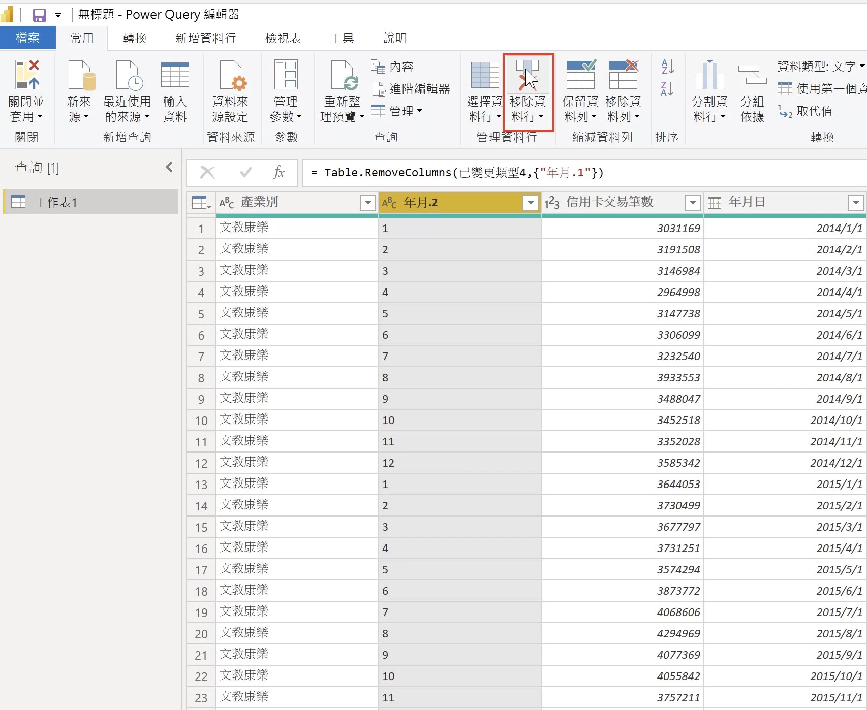 最後,針對用不到的「年月.1」、「年月.2」進行資料行刪除。